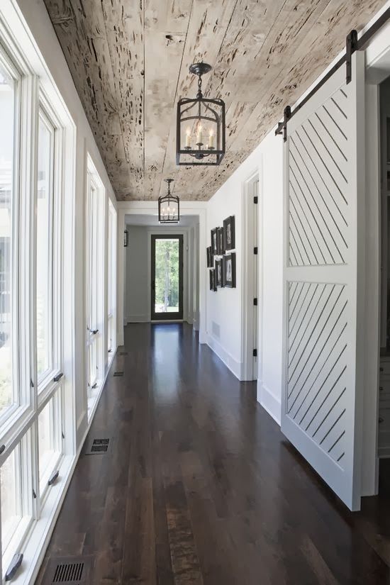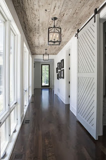 When you enter in through the garage the laundry mudroom is directly on your left. And here is also a view of the hallway to the garage and laundry/mudroom with the family room on the left and the pantry on the right. To save space and avoid so many doors opening and closing we are adding a sliding barn door along the right side of the hallway to cover the laundry/mudroom opening. I plan on it usually being open so we can easily get our soon to be family of five in a out of the mudroom but on days when I am running laundry I can close it to muffle the noise. The barn door idea has been giving me a hard time. Those things are very pricey. I originally wanted something like this:
