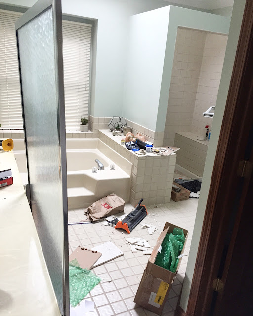 The kitchen/family room space has under gone a huge transformation but it is mostly architectural and not as much design. Taking out the old laundry room and opening up these two spaces is the greatest thing that came from flooding my house. I still wish that day/weekend never happened but this is a pretty great perk that came from it. The actual kitchen wasn't touched by water (boo!) so the cabinets, appliances and counters are staying but we were able to take out the kitchen desk which was located on the right side of this picture and expand that space to add half a wall of cabinets. Of course it will look different from the rest of the kitchen but hopefully in a good way. Next to that is a very large pantry which my kitchen before was completely missing. Here is a little sneak peek at the materials I chose for this space.